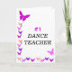Uma placa de saudação de Dia de os namorados com os gráficos do primeiro professor de dança" com borboletas coloridas giras na frente.