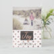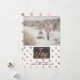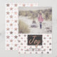 Placa de cartões de natal chic flat style, com sua foto personalizada, na metade superior da placa e estrelas rosa de ouro bonito decorando a metade inferior. Gráficos de uma área de texto de cinza de carvão, na parte inferior da placa tem um texto gráfico com aspecto rosa dourado a ler Joy. Personalize o texto da cinza escura, na parte inferior da frente, para adequá-lo às suas necessidades. Personalizar para adicionar texto adicional, no lado traseiro da estrela. Foto de exemplo cortesia de Lorri Lang.