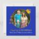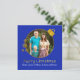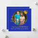 Cartão de saudação de Natal quadrado de estilo Na moda, feito em azul real, com uma área de fotos redondas decorada com sotaques dourados para se parecer com um ornamento de árvore. Dourado tom gráfico lê Feliz Natal. Personalize o texto branco para ler o que você quer e substitua a fotografia por sua própria foto, para uma maneira festiva e elegante de enviar seus cartões de natal. Os produtos correspondentes estão disponíveis.