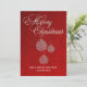 Cartão de saudação de Natal corporativo de estilo plano elegante, feito em um design vermelho em damask vermelho. Gráficos de tom prateado de enfeites de bola de árvore de Natal, pendurar no texto gráfico prateado lendo Feliz Natal. O texto branco personalizado, na parte inferior da frente da placa, está pronto para personalizar o que você quer. Excelente para funcionários e clientes.
