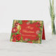 Deseje a seus amigos de negócios, parceiros de negócios e clientes um Feliz Natal com este cartão de cartões de natal dobrado personalizado. Lindo tema vermelho e dourado com floco de neve branco, estrelas cintilantes ouros, dourado e sinos de Natal vermelhos, flores douradas, vermelho festivo, flor de Poinsettia e miçangas vermelhas. Você pode adicionar facilmente o nome e o logotipo de sua empresa e sua própria saudação especial clicando no botão "personalizar".