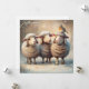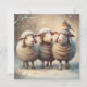 Cartão de saudação atmosférico que retrata três ovelhas bonitinhas vestindo as suas espessas velhas frotas de inverno. Um pinto que veste um chapéu branco giro que está empoleirado numa das cabeças das ovelhas. Eles parecem aconchegantes contra o frio e a neve que cobrir o chão. Um cartão de excelente adequado para o aniversário de alguém ou porque não enviá-lo a alguém especial este Natal.
