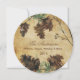 Um belo cartão de Natal para enviar a todos os seus amigos e familiares, apresenta um cartão redondo com um fundo de aparência castanho, cones de pínus, ramos de árvore e texto personalizável que lê Cartões de natal na frente, o mesmo olhar molhado, os mesmos cones de pínus e ramificações com uma área personalizável para adicionar seu nome de família, nomes e ano atual no passado.