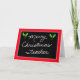 Este cartão de Natal do professor apresenta um quadro negro com uma fronteira vermelha, no qual as palavras "Feliz Professor de Natal" são escritas para fazer um cartão de Natal perfeito para o professor. Copyright Kathy Henis