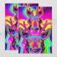 Cartão de Natal de abstrato de renas de neon psicodélica