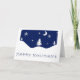 Cartão de saudação "Feliz Natal" com cena de neve azul e branca. Vazio no dentro.