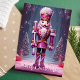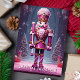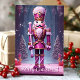 Celebrar os feriados com este cartão impressionante com um pregador rosa-real alto em uma cena mágica de inverno. A mensagem "Feliz Natal!" acrescenta um toque festivo à design encantadora, perfeita para compartilhar cartões de natal com amigos e familiares que amam um estilo único e elegante de Natal.