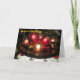 Perfeito por dar saudações da temporada a familiares ou amigos. Este cartão apresenta uma fotografia dos Enfeites de natal de decorações na casa dos meus pais. Fui inspirado a tirar esta fotografia pelas cores das lâmpadas vermelhas e douradas.