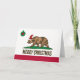 Uma peça sobre a bandeira do Estado da Califórnia com urso vestindo um boné de papais noeis, ornamento de feriado para a estrela e a mensagem "Feliz Natal" cartões de Natal. Para adicionar seu texto ao dentro da placa, use o recurso personalizar. Ou deixar vazio para uma saudação mais pessoal, escrita à mão.