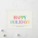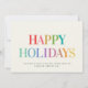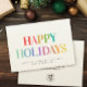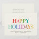 Esses cartões de natal brilhantes e divertidos são cartões personalizados modernos com tipografia de tendência lendo HAPPY HOLIDAYS em um design arco-íris na moda com seu nome de pequena empresa e mensagem com seu logotipo no verso (exclua o texto do modelo se nenhuma nota pré-impressa for necessária).