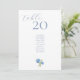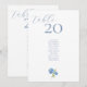 Estes números de mesa de casamento brancos e azuis e cartões de assentos de hóspedes apresentam um número de tabela personalizado, lista de assentos de hóspedes editáveis e hydrangea floral. Um conjunto contemporâneo de fontes mais um design de hydrangea floral define a cena para um evento tendencioso, mas elegante. Este modelo pode acomodar mais 2 nomes, no máximo. Os designs frente e verso são idênticos para visualização fácil a partir de diferentes ângulos. Dica: remova a marca d'água Zazzle na parte traseira da placa selecionando esta opção na página do produto. Este cartão faz parte de uma coleção que inclui convites e outros papéis de carta de casamento.