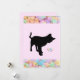 Cartão do Dia dos Namorados com um gato preto prestes a espalhar corações de doce ao redor.