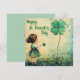 Um cartão doce do dia de São Patrício com uma jovem menina olhando para um trevo de quatro folhas. A frente diz; Feliz dia de São Patrício. O verso diz: Para você. Este é um cartão plano, de dois lados.