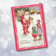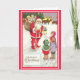 Na frente deste cartão Holiday, uma velha figura do Papai noel faz pausa para falar com três crianças esperançosas, seu saco de brinquedos nas costas e sua rena e trenó esperando no fundo. A imagem é enquadrada em vermelho e branco correspondentes. O texto do dentro pode ser facilmente personalizado para qualquer coisa que você quiser. A arte vitoriana da era vitoriana é uma maneira encantadora de dizer "Feliz Natal!"