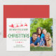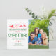 Este design apresenta um Papai Noel com rena e trenó. O texto "Desejamos-lhe um Natal muito feliz e um feliz ano novo" está escrito em tipografia vermelha e verde moderna e popular, com a opção de acrescentar o seu nome de família e uma fotografia de família. Perfeito para o inverno ou o Natal de verão. #natristmas #foto #cartão #personalizado #feriado #empresa #business
