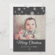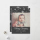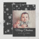 Cartão Festivo Moderno Feliz de Natal. Design festivo com flocos de neve e uma foto - insira sua foto no modelo. Personalize o cartão.