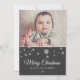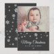 Cartão Festivo Moderno Feliz de Natal. Design festivo com flocos de neve e uma foto - insira sua foto no modelo. Personalize o cartão.