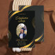 Celebrar um marco com nosso cartão de graduação moderno e elegante em um ouro na moda e preto florescendo. Esta placa personalizável permite adicionar um toque personalizado, incluindo uma imagem do formando, juntamente com o seu nome, o local e a hora da cerimônia de graduação. O elegante design da placa fornece o pano de fundo perfeito para mostrar as conquistas do formando e criar uma manutenção memorável para esta ocasião especial.