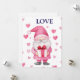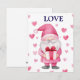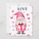 cartão fofo com um gnomo rosa de desenho animado apaixonado com um coração para o feriado de fevereiro no Dia dos Namorados