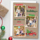 Feriados felizes 3 Cartão de Feriado de Colagem de Fotografias inclui Fita de Artesanato e Caminhão Vermelho Vintage com Cores Aquáticas com Árvore de Natal. Rustic Kraft Paper.