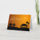 Um cartão de saudação de Natal com cena de natividade em Belém, os três sábios em camelos guiados pela estrela Mary, José e Jesus bebê em uma mangueira, cercados por animais. Você pode personalizar este cartão com seu próprio texto personalizado.