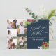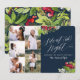Cartão noturno de fotos múltiplas, silencioso. Com um texto elegante sobre as tendências e lindas aquarelas florais festivas, estes Cartões de foto de Natal estão de acordo com o seu estilo nesta época de férias.