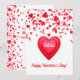 Um cartão do Dia dos Namorados com corações de confetes vermelhos e um coração duplo vermelho que você pode personalizar.