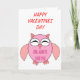 Este cartão de Dia de os namorados bonito apresenta um desenho fofo de uma coruja rosa com olhos sonolentos, um pequeno bico e pequenos pés bonitos. Há um texto cor-de-rosa brilhante dentro da barriga das corujas que diz, "Coruja Sempre Te Ama". Este é o presente perfeito para mostrar a alguém especial o quanto você os ama. A dentro do cartão tem texto personalizável para que você possa escrever sua própria mensagem pessoal de amor.