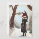 Cartão Pintado à Mão Festa Raposa de Inverno. Bonito e único cartão sazonal projetado com pintura suave em pastel feito por mim. Raposa do livro de histórias em um caminho de inverno vestida com um casaco e saia pretos. Encontro raro. Pegue hoje!