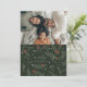Uma bela design de cartão de Natal, com folhagem desenhada à mão e bagas espalhadas em tons tradicionais verdes e vermelhos, com um roteiro elegante e fonte serif clássica. A frente desta design tem uma foto e a parte de trás tem uma foto maior com uma linha de texto editável. Este modelo de design usa 2 fotos no total. Consulte os outros designs desta coleção para outros layouts que usam mais ou menos fotos. Obrigado!