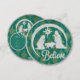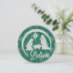 Cartão plano de natividade redonda tradicional. Jesus, Maria e José com Turquesa e Dourado Fundo. Silver Glitter e Shinny Dourado Look. Foto e texto editáveis.