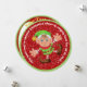 Belo Cartão De Natal De Natal. Elf bonitinho em verde metálico e reluzente vermelho olhe para o plano de natal. Cartão editável de foto e texto. Citação do Filme de Natal "A melhor maneira de espalhar a alegria de Natal é cantar alto para todos ouvirem."