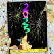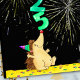 Este cartão de Ano Novo 2025 apresenta um bonito ouriço desenhado à mão vestindo um chapéu de partido estriado, e balanceando os números 2, 0, 2 e 5 no nariz. Os fogos de artifício estão a rebentar em frente a um fundo preto.
