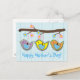 Cartaz de Dia de as mães azul de passarinho grávida bonito. Um design bonito de três pássaros adoráveis, pendurados em um galho, com pássaros azuis menores dentro suas barrigas sobre fundo xadrez azul. Excelente como presente de Dia das Mães. Você pode excluir ou alterar texto se desejar. Basta clicar em "Personalizar" à direita.