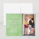Cartaz de fotos de Fenda de Neve, porém simples, oscila no Floco de Neve, apresentando uma série de espirais, floresce e flocos de neve em um plano de aparência verde. Este elegante cartão-postal fotográfico é fácil de personalizar com uma fotografia e a sua saudação de Natal personalizada. Clique em "personalizar" para encontrar opções adicionais de personalização. Fotografia © Storytree Studios, Stanford, CA