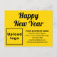 Feliz ano novo! Um novo começo. Um novo começo. Feriado para comemorar este janeiro e anunciar também seu negócio. Cartão postal de feriado personalizável que você pode colocar na sua marca de negócios e com saudação de Ano Novo. Personalize-o e use-o para receber seus clientes ou clientes este ano novo. Você também pode usá-lo como material de marketing para anunciar sua empresa ou para promover seu nome de marca. Cartão postal de feriado personalizável que você pode usar para criar reconhecimento de nome de marca. As cores design são textos pretos sobre fundo amarelo. Para personalizar este cartão postal, digite seu nome comercial, endereço, número de telefone, e-mail, site ou página de mídia social e carregue o logotipo de sua empresa. Após digitar textos e carregar logotipo, verifique a aparência. Se a aparência lhe agrada, você pode colocar seu pedido agora. Se você precisar redimensionar e mover os textos e o logotipo para o ajustado neste cartão postal, troque a ferramenta design. Você também pode alterar a cor do plano de fundo, a cor da fonte e o estilo da fonte na ferramenta design. Você também pode adicionar imagens e textos no verso da ferramenta design. Feliz ano novo! Desejando mais vendas para este feriado e para os próximos anos.