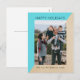 Cartão postal de Natal moderno e elegante, com duas faces geométricas chic e na moda, com um lado na turquesa e outro com um fundo de textura falsa em papel bege. Este cartão com fotos clássico e moderno pode ser facilmente personalizado com uma fotografia e uma saudação de Natal personalizada. Localize mais opções de personalização clicando em Personalizar. Fotografia © Storytree Studios, Stanford, CA