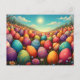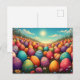 Um campo interminável de ovos de Páscoa lindamente pintados brilha sob um sol macio. As cores alegres e os padrões brincalhões dos ovos espalham uma atmosfera de alegria e segurança. As coloridas flores da primavera florescem entre os ovos e completam a pacífica paisagem sonhadora. Um lugar cheio de magia que desperta memórias de infância e a antecipação da Páscoa neutra.