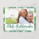 Folhas verdes tropicais bordam sua foto. Abaixo da sua imagem está o texto desejando aos seus amigos e familiares Mele Kalikimaka, em havaiano "Feliz Natal". O nome da sua família é impresso abaixo da saudação de Natal. O texto é impresso com duas fontes coordenadas em verde de Natal. Uma simples saudação de Natal é impressa no verso do cartão postal junto com seus nomes. O texto é impresso com uma fonte verde de Natal. Para enfeitar o cartão postal acima da linha de endereço está um texto em itálico direcionando ao Sr. Carteiro Por Favor Entregue Para: com espaço abaixo para o endereço manuscrito.