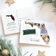 Anuncie a sua mudança para o Estado Sunshine com estes cartões postais de anúncio de feriados fofos da Flórida. Design apresenta três fotos, tirando dentro a silhueta do estado da Flórida, em um sutil fundo com padrão de floco de neve. Na frente do cartão lê-se "Estamos decifrando novos corredores — os [nomes de família] têm um novo endereço!" Personalize as costas com um cartões de natal personalizado e seu novo endereço. Inclui uma silhueta de mapa de estado correspondente com um coração que você pode mover para ajustado a localização da sua nova casa.