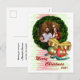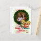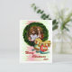 Foto personalizada Natal em na moda e design elegante com uma bela coroa de Natal com uma grande fita de ouro em fundo de cor-de-água verde e vermelha. Veja outras designs de Natal na coleção "Cheers of Christmas" (Saúde do Natal).
