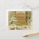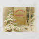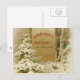 Ilustração gráfica vinda da Hungria de 1901. Neve cobriu pinheiros e um cartaz de jardim dizendo saudações de Natal e beijo na sua mão em húngaro.