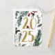 Envie aos amigos e à família os melhores votos para o Ano Novo com este bonito cartão de Ano Novo 2025. Esta design apresenta um fundo branco moderno e moderno com verde botânico rústico, pinheiros e bagas vermelhas. Um cardeal vermelho charmoso se senta em um dos números de ouro. Personalize a parte de trás com seu nome e endereço.