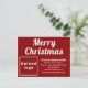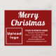 Feliz Natal! Um dos feriados mais comemorados do ano. É também uma das melhores estações para anunciar sua empresa ou promover seu nome de marca para clientes ou clientes. Cartão postal de feriado personalizável que você pode colocar na sua marca de negócios e com saudações de Natal. Personalize-o e use-o para receber seus clientes ou clientes neste Natal. Você também pode usá-lo como material de marketing para anunciar sua empresa ou para promover seu nome de marca. Cartão postal de feriado personalizável que você pode usar para criar reconhecimento de nome de marca. Cartão postal de Natal para dezembro ou Natal em julho. As cores design são textos brancos sobre fundo vermelho. Para personalizar este cartão postal, digite seu nome comercial, endereço, número de telefone, e-mail, site ou página de mídia social e carregue o logotipo de sua empresa. Após digitar textos e carregar logotipo, verifique a aparência. Se a aparência lhe agrada, você pode colocar seu pedido agora. Se você precisar redimensionar e mover os textos e o logotipo para o ajustado neste cartão postal, troque a ferramenta design. Você também pode alterar o estilo da fonte, a cor da fonte e a cor do plano de fundo na ferramenta design. Você também pode adicionar imagens e textos no verso da ferramenta design. Feliz Natal! Desejo mais vendas para você neste feriado.