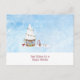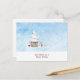 Cartão-postal de férias com uma casa gnomo com as palavras "Melhores Desejos para um Feliz Feriado". O texto é totalmente editável.