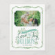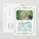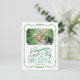 Cartões postais de fotos de feriado impressos personalizados com barato simples para personalização. Este design alegre apresenta elementos florais brancos e tipografia de estilo divertida, escrita à mão, em cores verdes e de hortelã. O texto diz: "Que seu coração esteja cheio de amor e alegria das férias". Personalize com sua foto, nomes e o ano. O verso tem espaço para texto ou fotos adicionais e seu endereço de devolução para facilitar o envio. Use as ferramentas de design para editar as fontes de texto e as cores ou adicionar mais fotos para criar um único cartão postal de fotos de Natal.
