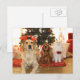 Gatinhos e cães adoráveis na árvore de Natal. Um cão tem uma Papai noel à outra - o gatinho está a vestir um arco de Natal. Que fofo!