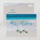 Saudação de Natal tropical, cartão postal de barato. Personalize todo o texto com a areia do oceano e da praia como a imagem de fundo. Economize dinheiro com este tipo de cartão.