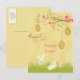 Esta placa de posto de Páscoa tem um fundo de espiral amarelo/bronzeado suave com muitos pequenos pontos brancos espalhados por toda parte. No topo, há dois galhos com flores rosadas fuchsia brilhantes que têm ovos decorados pendurados neles. No fundo, há dois coelhos pulando em torno de uma grama junto com dois ovos à direita. O felz pascoa está escrito em direção ao meio. Na parte de trás, há o mesmo padrão de pontos amarelos macios em ambos os lados. Fica vazio sem mensagem para que você possa escrevê-la em casa ou personalizá-la antes de comprar.