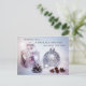 Um cartão postal de Natal sofisticado e caprichoso que mostra uma lanterna iluminada pela luz de velas, adornada com pinhas e ornamentos alegres de Natal.